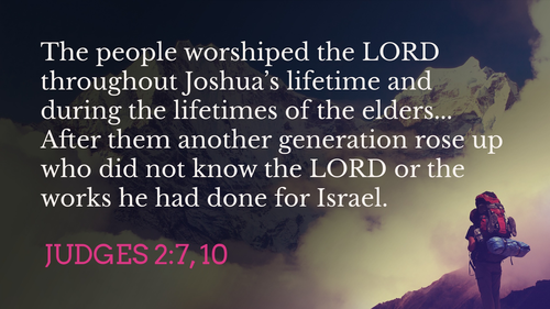 “The people worshiped the LORD throughout Joshua’s lifetime and during the lifetime of the elders…After them another generation rose up who did not know the LORD or the works he had done for Israel” (Judges 2:7, 10).